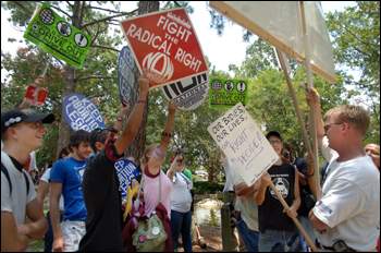 Bush Regime Now organization. “They [anti-choice protesters] were trying to shut us down and we