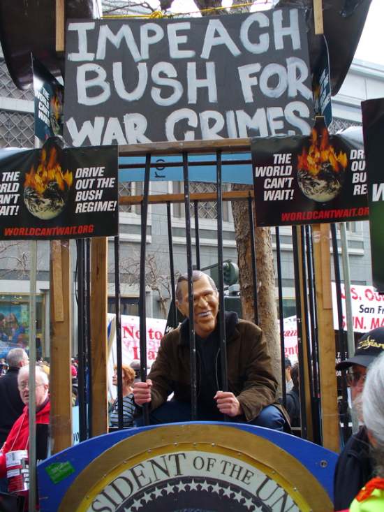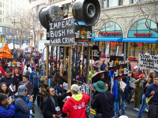 under the slogan, “Stop the War Now – Impeach Bush for War Crimes!”,