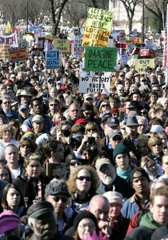 weeks after Bush announced his escalation of the Iraq war, massive numbers of people