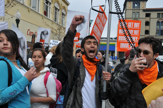 students went on an un-permitted march through the streets. The San