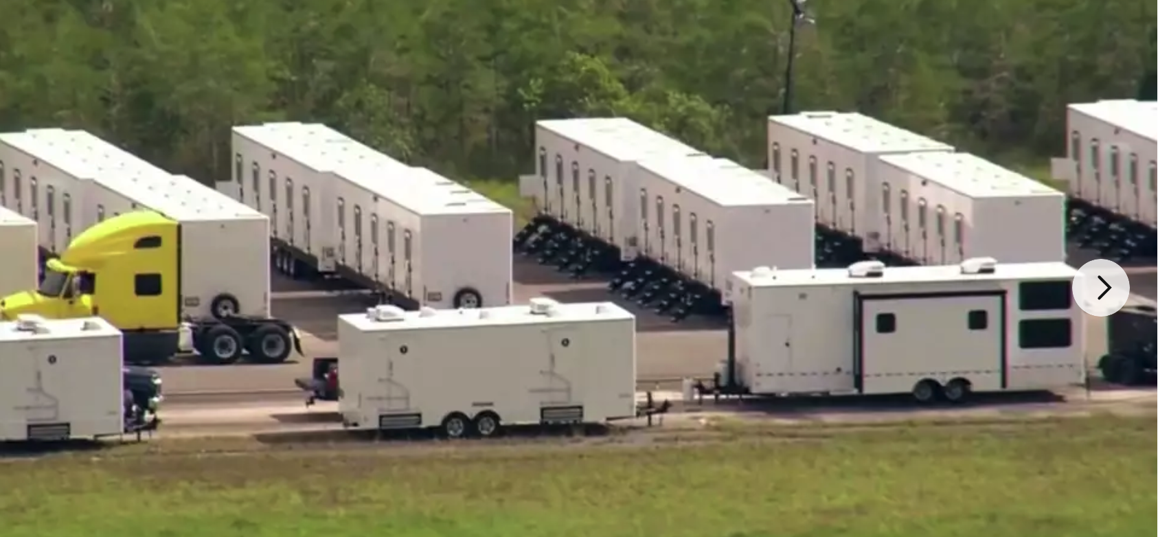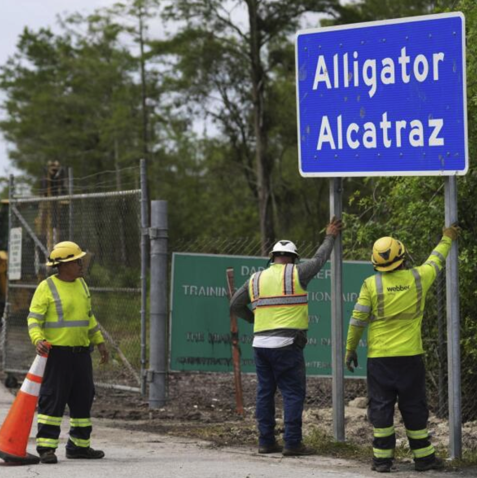 Alligator Alcatraz is run by Department of Homeland Security on historically Seminole land in Florida. Put together in 8 days, it’s a collection of tents and trailers with little infrastructure to support thousands of human lives. The sign below indicates that rather than being a nickname for some generic facility, Alligator Alcatraz is the actual name of this concentration camp. Florida lawmakers were given a tour, reporting afterward that conditions outraged them.