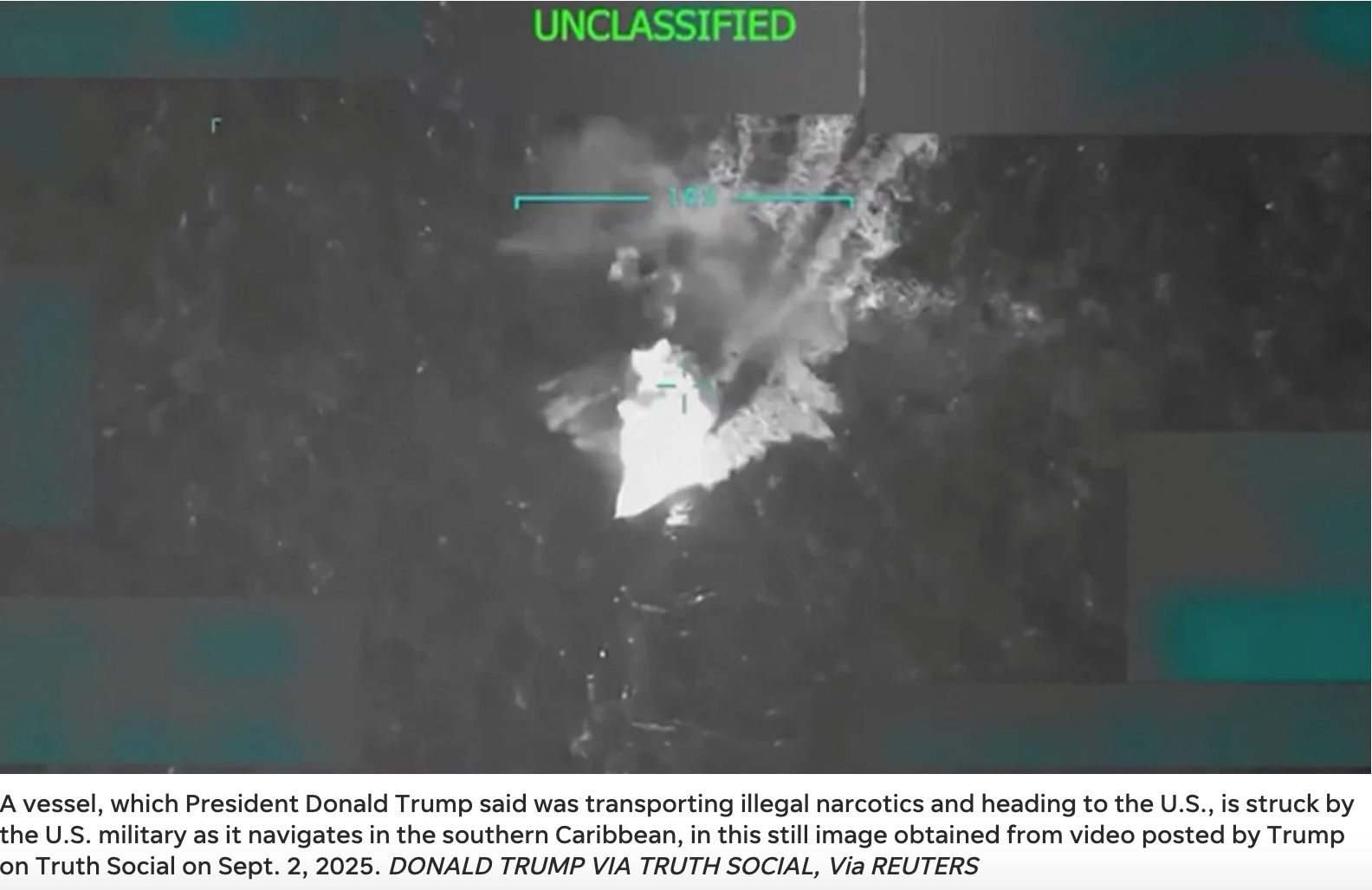 Last week, Trump and Vance bragged about a military strike that killed 11 people in the Caribbean Sea. They claimed these 11 were gang members smuggling drugs into the U.S. From Trump’s Truth Social account: