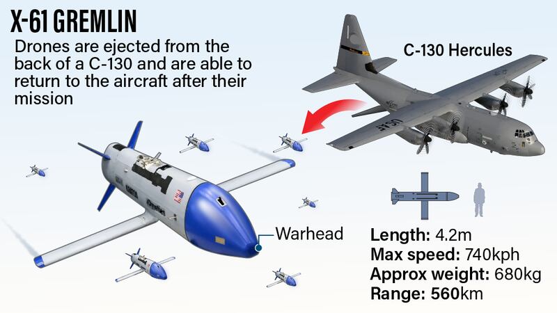 The Pentagon has also experimented with launching drones from a transport plane, with the controller on the transport, to which the drones would return after they attack.