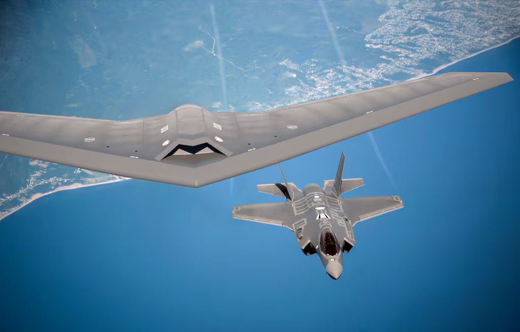 This is a rendering of a next generation drone, the larger aircraft, flying with an F-35, manned controller aircraft.